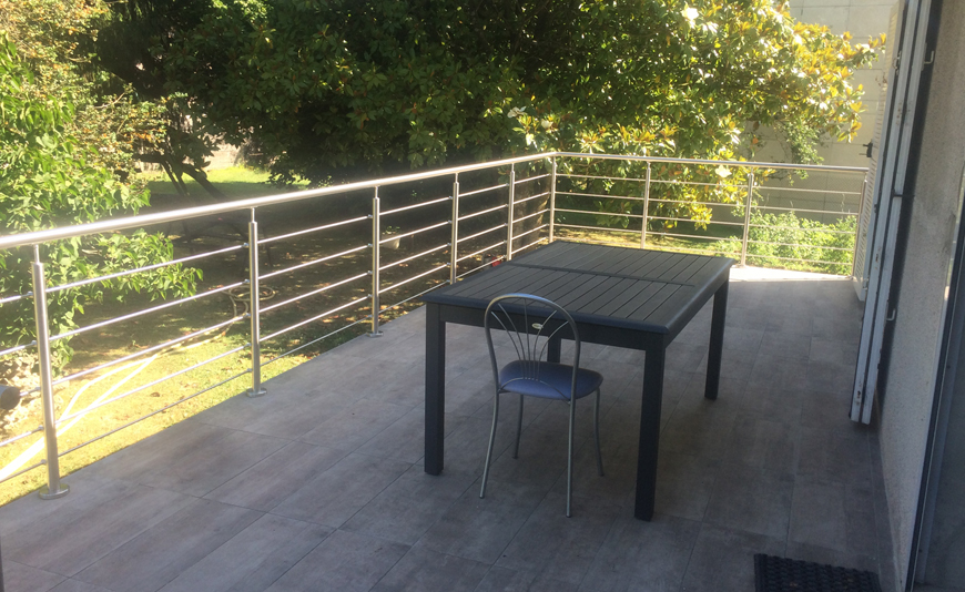 La terrasse de notre client est mise en valeur pour un résultat sobre et contemporain. La balustrade terrasse encadre la vue sans la gâcher. La rambarde avec sous-lisses se marie avec toute architecture moderne comme ancienne. Non seulement, la terrasse est sécurisée, mais l’aspect graphique de ce modèle de balustrade est esthétique et élégant. Notre client peut profiter en toute sécurité de la vue sur son magnifique jardin et le paysage champêtre des alentours.
