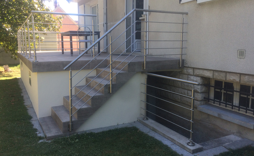Il faut toujours choisir la qualité d’inox de votre rambarde inox en fonction de l’endroit où vous l’installez. L’inox 304 est réservé à une utilisation en intérieur. En extérieur, l’inox 316 en finition brossé est parfait pour un garde-corps de terrasse, de balcon, ou une rampe d’escalier. Près de la mer ou aux abords d’une piscine, on préfèrera l’inox 316 poli miroir, du fait de l’atmosphère particulièrement corrosive de ces environnements.