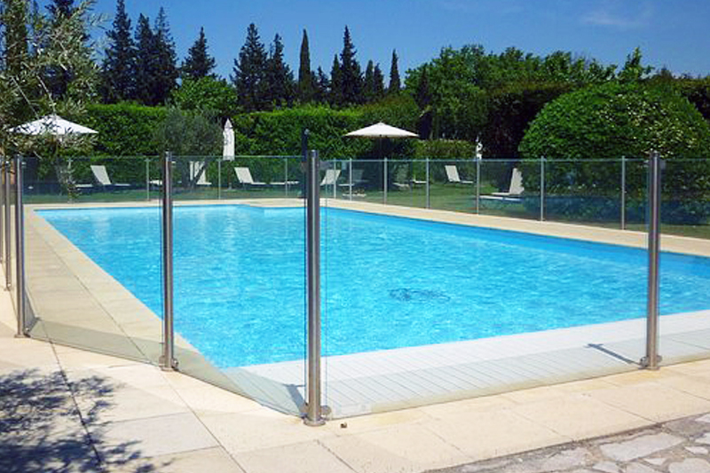 Grâce à la solidité du verre trempé et des poteaux en inox, cette rambarde forme une barrière efficace contre toute tentative d’escalade, tout en laissant une vue dégagée sur le bassin.