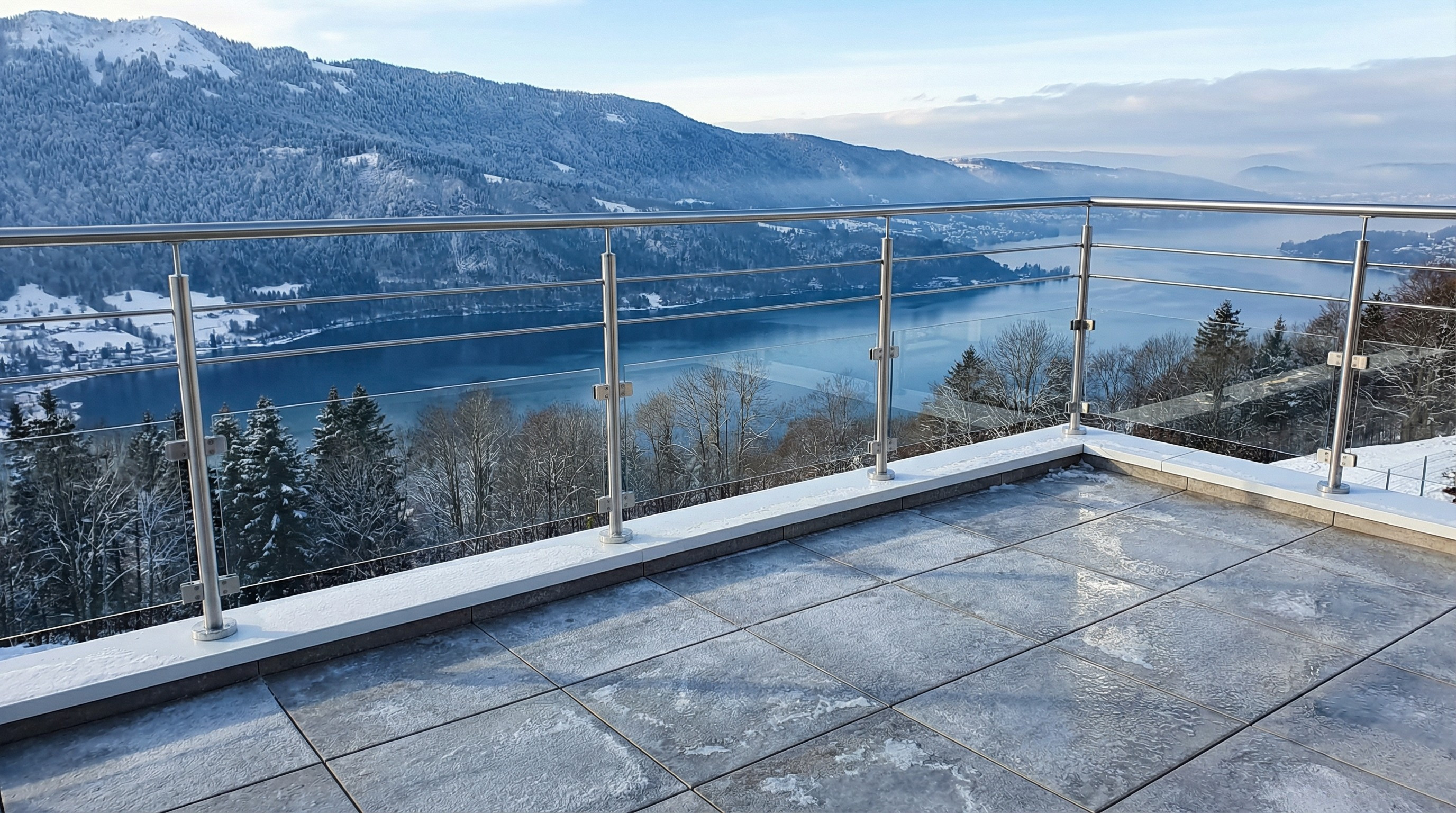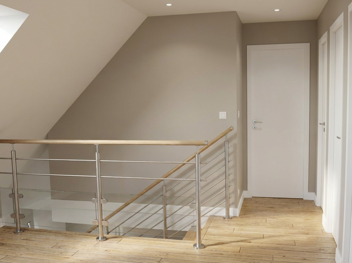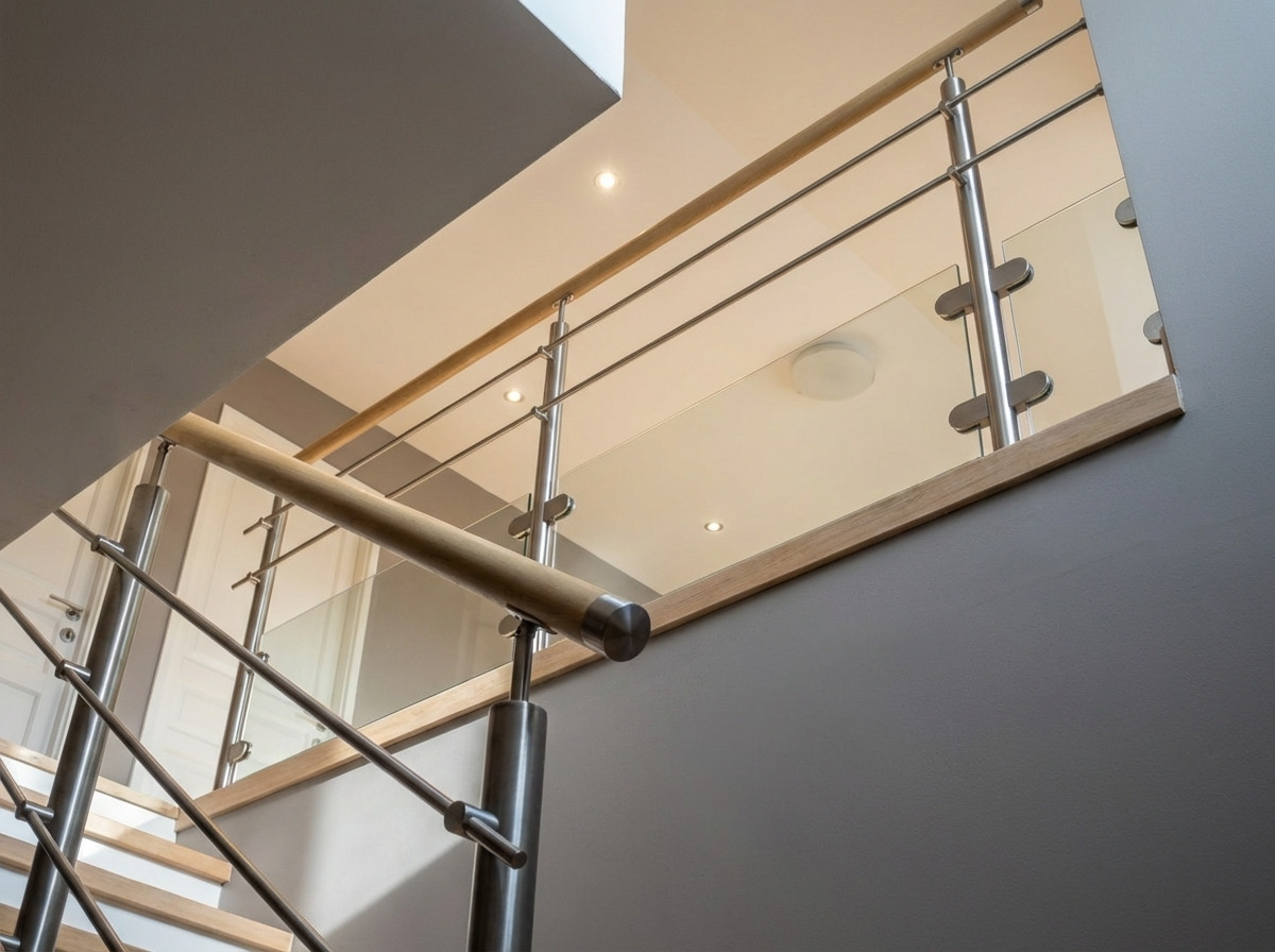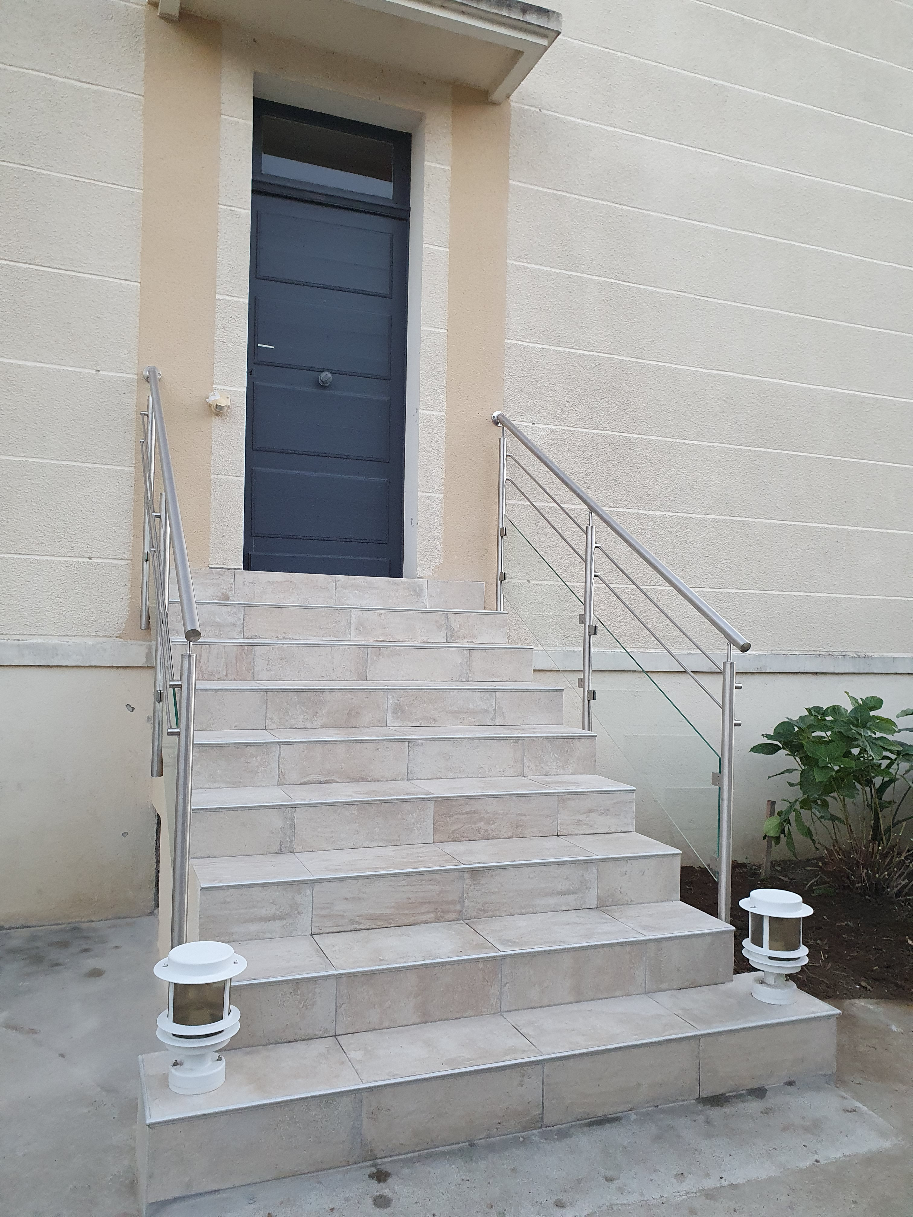 Garde-corps en inox, pose à la française ou à l'anglaise, avec remplissage vitrage et barres inox